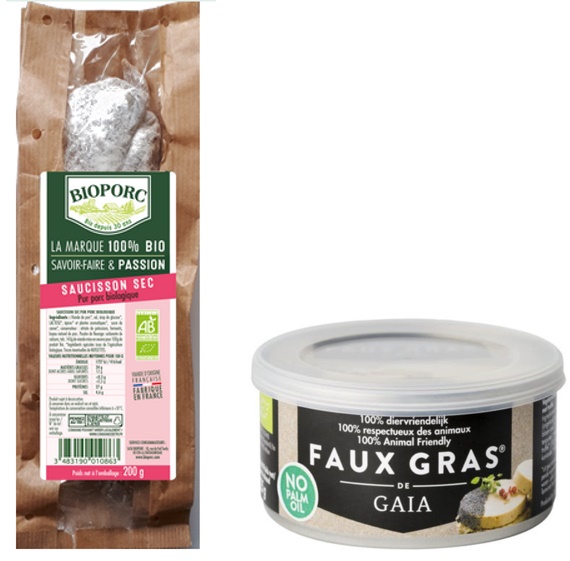 Le faux gras se déguste nature, sur des toasts, s’agrémente, si l’on veut, de poivre ou de confit d’oignons ou de framboises, il peut aussi faire l’objet de recettes originales, salées ou sucrées ! 100% végétal. A la truffe (1%) et au champagne (2%). Sans huile de palme.